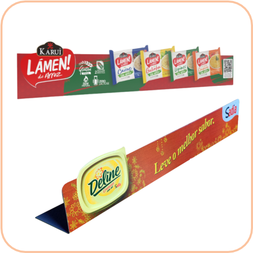 Esse tipo de peça tem por objetivo tornar os produtos expostos nas gôndolas ou prateleiras mais atraentes e visíveis por isso pode ser personalizada conforme o interesse da marca.