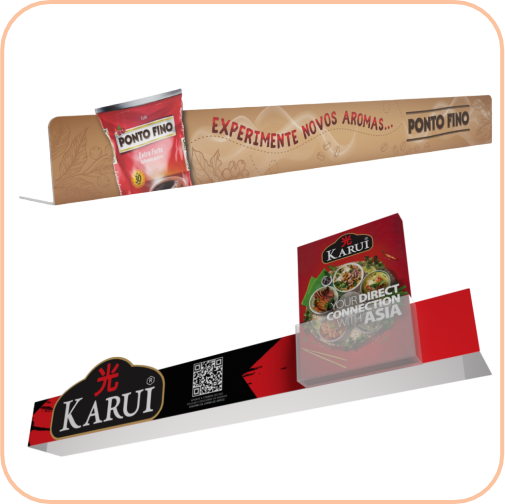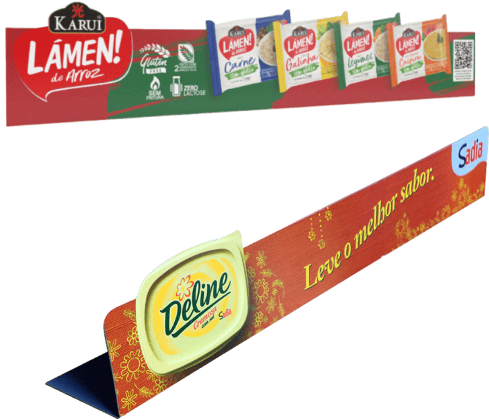 Aplicada diretamente nas gôndolas, mais precisamente no local em que os preços são expostos, a faixa atrai a atenção do consumidor, transmite mensagens da marca e melhora a organização e exposição dos produtos influenciando diretamente na sua venda.